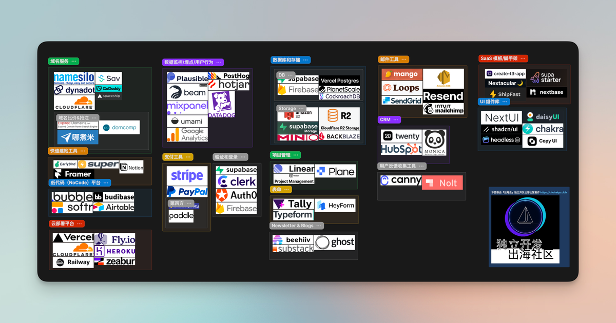 为志在出海的独立开发者量身定制的海外工具生态系统全景图 (Landscape)